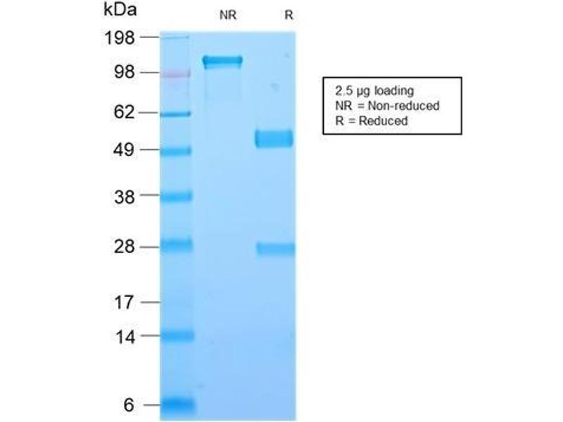 Known Application: ELISA (Use Ab at 2-4 μg/mL for coating) (Order Ab without BSA), Immunohistochemistry (Formalin-fixed) (0.5-1 μg/mL for 30 min at RT)(Staining of formalin-fixed tissues requires boiling tissue sections in 10 mM Citrate Buffer, pH 6.0, for 10-20 min followed by cooling at RT for 20 minutes)Optimal dilution for a specific application should be determined.