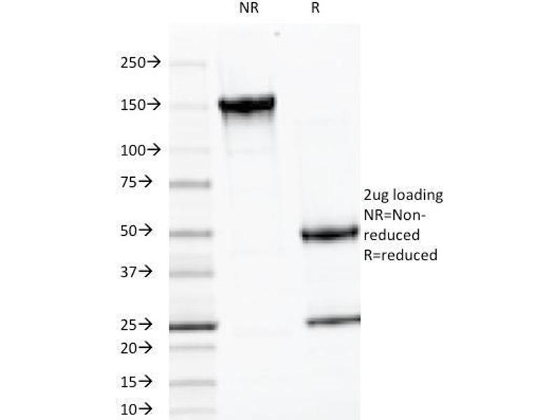Known Application: Immunohistochemistry (Formalin-fixed) (1-2 μg/mL, 30 min RT) (Staining of formalin-fixed tissues requires boiling tissue sections in 10 mM citrate buffer, pH 6.0, for 10-20 min followed by cooling at RT for 20 minutes)Optimal dilution for a specific application should be determined.
