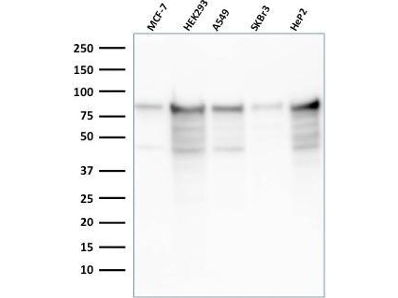 Positive Control: MCF-7, HEK-293, A549, SKBr3, HeP2, Raji or Ramos cells. Tonsil (IHC).