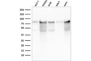 Known Application: Western Blot (1-2 μg/mL),Immunohistochemistry (Formalin-fixed) (0.5-1 μg/mL for 30 minutes at RT)(Staining of formalin-fixed tissues requires boiling tissue sections in 10 mM citrate buffer, pH 6.0, for 10-20 min followed by cooling at RT for 20 minutes)Optimal dilution for a specific application should be determined.