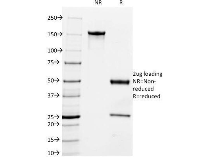 Known Application: Immunohistochemistry (Formalin-fixed) (0.5-1 μg/mL for 30 min at RT)(Staining of formalin-fixed tissues requires boiling tissue sections in 10 mM Citrate Buffer, pH 6.0, for 10-20 min followed by cooling at RT for 20 minutes)Optimal dilution for a specific application should be determined