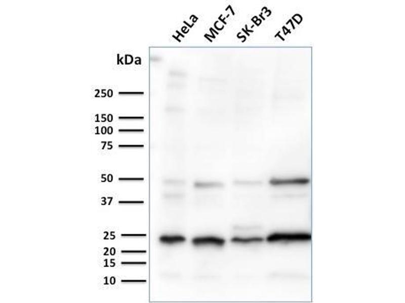 Positive Control: HeLa, MCF-7, SK-Br3 and T47D cells. Breast Carcinoma.