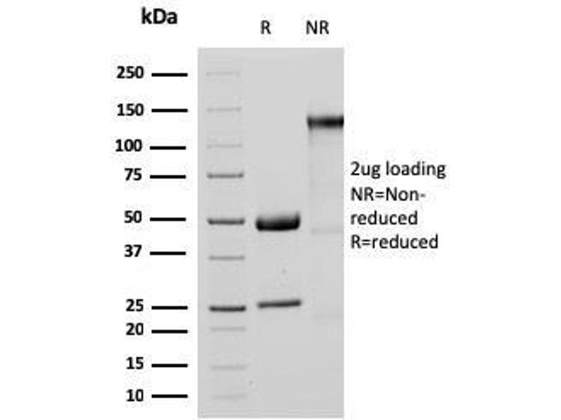 Known Application: ELISA (Use Ab at 2-4 μg/mL for coating) (Order Ab without BSA), Western Blot (0.5-2 μg/mL),Immunohistochemistry (Formalin-fixed) (1-2 μg/mL for 30 minutes at RT)(Staining of formalin-fixed tissues requires boiling tissue sections in 10 mM Tris with 1 mM EDTA, pH 9.0, for 10-20 min followed by cooling at RT for 20 minutes)Optimal dilution for a specific application should be determined.