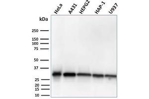 Positive Control: HepG2, A431, HeLa or MCF-7 cells. Human kidney tissues.