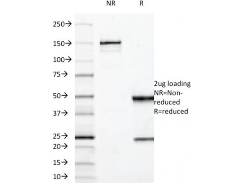 Known Application: Immunohistochemistry (Formalin-fixed) (1-2 μg/mL for 30 minutes at RT)(Staining of formalin-fixed tissues requires boiling tissue sections in 10 mM Tris with 1 mM EDTA, pH 9.0, for 10-20 min followed by cooling at RT for 20 minutes)Optimal dilution for a specific application should be determined.