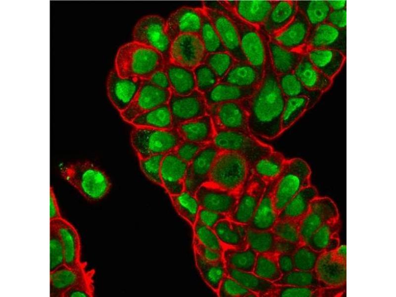 Known Application: Flow Cytometry (0.5-1 μg/million cells), Immunofluorescence (0.5-1 μg/mL), Western Blot (0.5-1 μg/mL), Immunohistochemistry (Formalin-fixed) (0.5-1.0 μg/mL for 30 minutes at RT)(Staining of formalin-fixed tissues is enhanced by boiling tissue sections in 10 mM Citrate Buffer, pH 6.0, for 10-20 min followed by cooling at RT for 20 minutes)Optimal dilution for a specific application should be determined.