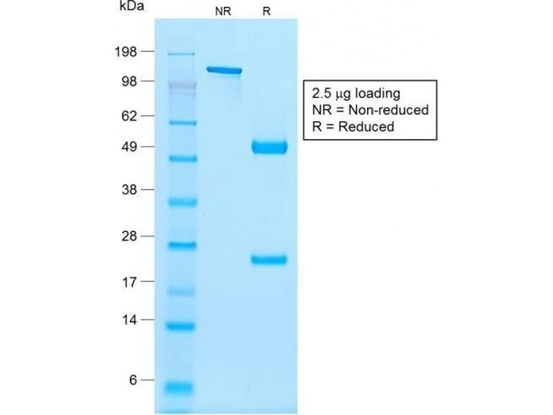 Known Application: Immunohistochemistry (Formalin-fixed) (0.5-1 μg/mL for 30 minutes at RT)(Staining of formalin-fixed tissues requires boiling tissue sections in 10 mM citrate buffer, pH 6.0, for 10-20 min followed by cooling at RT for 20 minutes)Optimal dilution for a specific application should be determined.