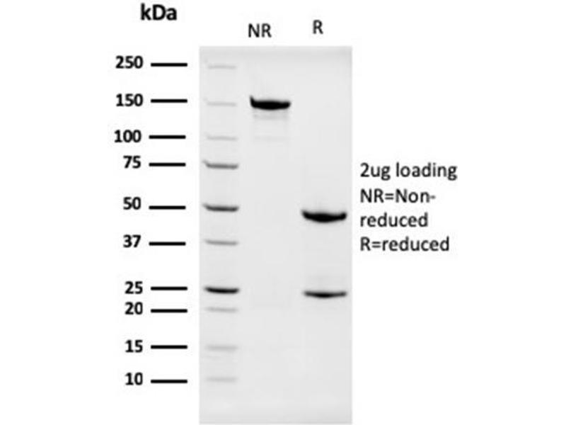 Known Application: Immunofluorescence (1-2 μg/mL), ELISA (Use Ab at 2-4 μg/mL for coating) (Order Ab without BSA), Western Blot (1-2 μg/mL), Immunohistochemistry (Formalin-fixed) (1-2 μg/mL for 30 min at RT) (Staining of formalin-fixed tissues requires boiling tissue sections in 10 mM Citrate Buffer, pH 6.0, for 10-20 min followed by cooling at RT for 20 minutes) Optimal dilution for a specific application should be determined.