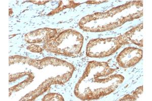 Known Application: Immunohistochemistry (Formalin-fixed) (1-2 μg/mL for 30 min at RT)(Staining of formalin-fixed tissues requires boiling tissue sections in 10 mM Citrate Buffer, pH 6.0, for 10-20 min followed by cooling at RT for 20 minutes)Optimal dilution for a specific application should be determined.