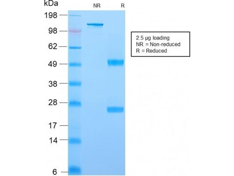 Known Application: Immunohistochemistry (Formalin-fixed) (1-2 μg/mL for 30 min at RT)(Staining of formalin-fixed tissues requires boiling tissue sections in 10 mM Citrate Buffer, pH 6.0, for 10-20 min followed by cooling at RT for 20 minutes)Optimal dilution for a specific application should be determined.