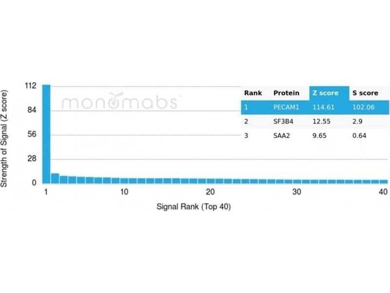 - Recombinant fragment (around aa 625-738) of human CD31 protein (exact sequence is proprietary)