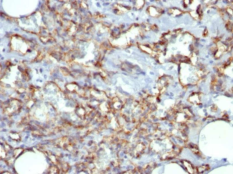 - CD31 (PECAM-1) is a transmembrane glycoprotein member of the immunoglobulin supergene family of adhesion molecules. CD31 is expressed by stem cells of the hematopoietic system and is primarily used to identify and concentrate these cells for experimental studies as well as for bone marrow transplantation. Anti-CD31 has shown to be highly specific and sensitive for vascular endothelial cells. Staining of nonvascular tumors (excluding hematopoietic neoplasms) is rare. CD31 MAb reacts with normal, benign, and malignant endothelial cells which make up blood vessel lining. The level of CD31 expression can help to determine the degree of tumor angiogenesis, and a high level of CD31 expression may imply a rapidly growing tumor and potentially a predictor of tumor recurrence.