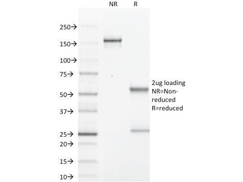 Known Application: Flow Cytometry (0.5-1 μg/million cells), Immunofluorescence (0.5-1 μg/mL), Western Blot (0.5-1 μg/mL), Immunohistochemistry (Formalin-fixed) (0.5-1 μg/mL for 30 minutes at RT)(Staining of formalin-fixed tissues is enhanced by boiling tissue sections in 10 mM Tris buffer with 1 mM EDTA, pH 9.0, for 10-20 min followed by cooling at RT for 20 minutes)Optimal dilution for a specific application should be determined.