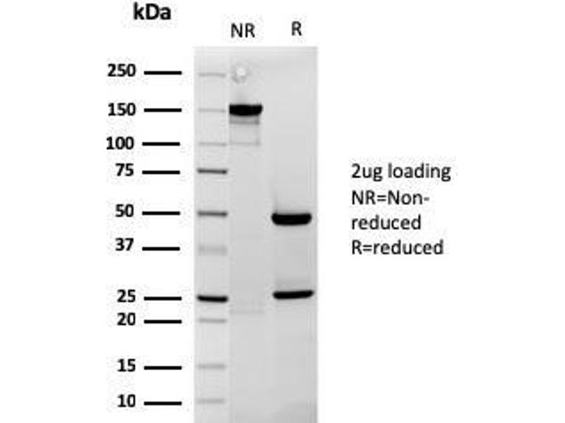 Known Application: Immunohistochemistry (Formalin-fixed) (1-2 μg/mL for 30 minutes at RT),(Staining of formalin-fixed tissues requires boiling tissue sections in 10 mM citrate buffer, pH 6.0, for 10-20 min followed by cooling at RT for 20 minutes),Optimal dilution for a specific application should be determined.