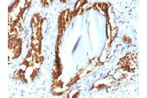 Known Application: Immunohistochemistry (Formalin-fixed) (0.5-1.0 μg/mL for 30 minutes at RT) (Staining of formalin-fixed tissues requires boiling tissue sections in 10 mM citrate buffer, pH 6.0, for 10-20 min followed by cooling at RT for 20 minutes)Optimal dilution for a specific application should be determined.