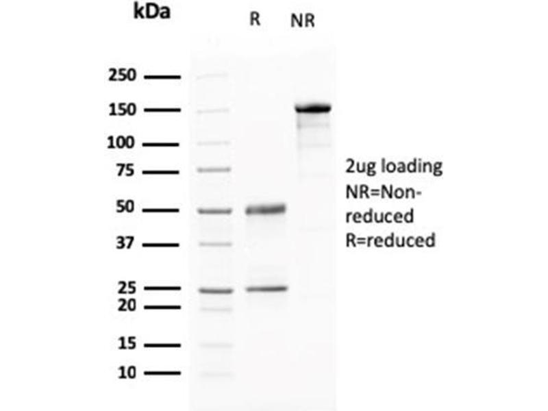Known Application: Immunohistochemistry (Formalin-fixed) (1-2 μg/mL for 30 min at RT)(Staining of formalin-fixed tissues requires boiling tissue sections in 10 mM Citrate Buffer, pH 6.0, for 10-20 min followed by cooling at RT for 20 minutes)Optimal dilution for a specific application should be determined.