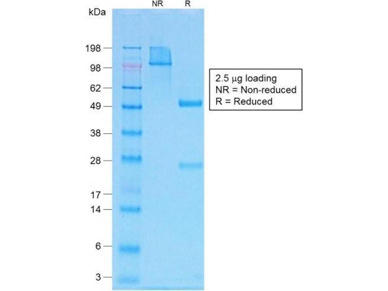 Known Application: Immunohistochemistry (Formalin-fixed) (0.5-1.0 μg/mL for 30 minutes at RT)(Staining of formalin-fixed tissues requires boiling tissue sections in 10 mM Citrate Buffer, pH 6.0, for 10-20 min followed by cooling at RT for 20 minutes)Optimal dilution for a specific application should be determined.