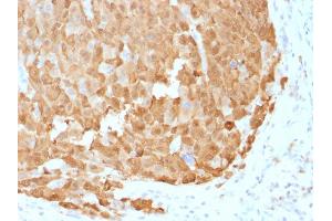 Known Application: Immunohistochemistry (Formalin-fixed. Not suitable for frozen tissues.) (0.5-1 μg/mL for 30 minutes at RT)(Staining of formalin-fixed tissues requires boiling tissue sections in 10 mM citrate buffer, pH 6.0, for 10-20 min followed by cooling at RT for 20 minutes)Optimal dilution for a specific application should be determined.