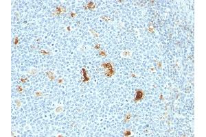 - Recognizes the L1 or Calprotectin molecule, an intra-cytoplasmic antigen comprising of a 12 kDa alpha chain and a 14 kDa beta chain expressed by granulocytes, monocytes and by tissue macrophages. Macrophages usually arise from hematopoietic stem cells in the bone marrow. Under migration into tissues, the monocytes undergo further differentiation to become multifunctional tissue macrophages. They are classified into normal and inflammatory macrophages. Normal macrophages include macrophages in connective tissue (histiocytes), liver (Kupffer's cells), lung (alveolar macrophages), lymph nodes (free and fixed macrophages), spleen (free and fixed macrophages), bone marrow (fixed macrophages), serous fluids (pleural and peritoneal macrophages), skin (histiocytes, Langerhans's cell) and in other tissues. Inflammatory macrophages are present in various exudates. Macrophages are part of the innate immune system, recognizing, engulfing and destroying many potential pathogens including bacteria, pathogenic protozoa, fungi and helminthes. This MAb reacts with neutrophils, monocytes, macrophages, and squamous mucosal epithelia and has been shown as an important marker for identifying macrophages in tissue sections.