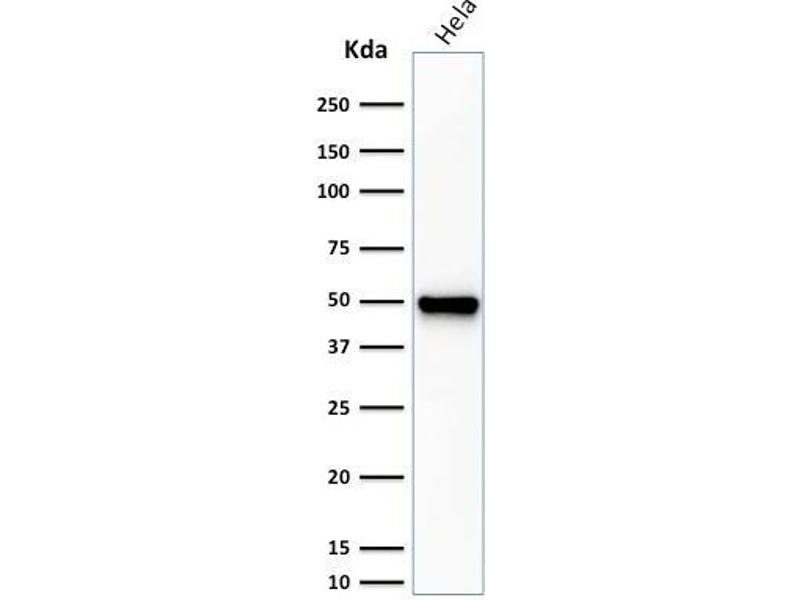 Positive Control: K562, HeLa, MCF-7, PC-3 or BEWO cells. Hodgkin's lymphoma, Ovarian or Testicular Carcinoma.