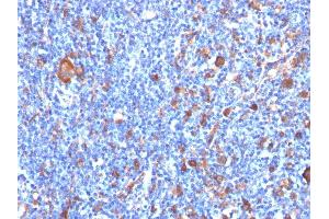 Recognizes a protein of 55 kDa, which is identified as fascin-1. Its actin binding ability is regulated by phosphorylation. Antibody to fascin-1 is a very sensitive marker for Reed-Sternberg cells and variants in nodular sclerosis, mixed cellularity, and lymphocyte depletion Hodgkin's disease. It is uniformly negative in lymphoid cells, plasma cells, and myeloid cells. Fascin-1 is also expressed in dendritic cells. This marker may be helpful to distinguish between Hodgkin lymphoma and non-Hodgkin lymphoma in difficult cases. Also, the lack of expression of fascin-1 in the neoplastic follicles in follicular lymphoma may be helpful in distinguishing these lymphomas from reactive follicular hyperplasia in which the number of follicular dendritic cells is normal or increased. Antibody to fascin-1 has been suggested as a prognostic marker in neuroendocrine neoplasms of the lung as well as in ovarian cancer. Fascin-1 expression may be induced by Epstein-Barr virus (EBV) infection of B cells with the possibility that viral induction of fascin in lymphoid or other cell types must also be considered in EBV-positive cases.