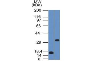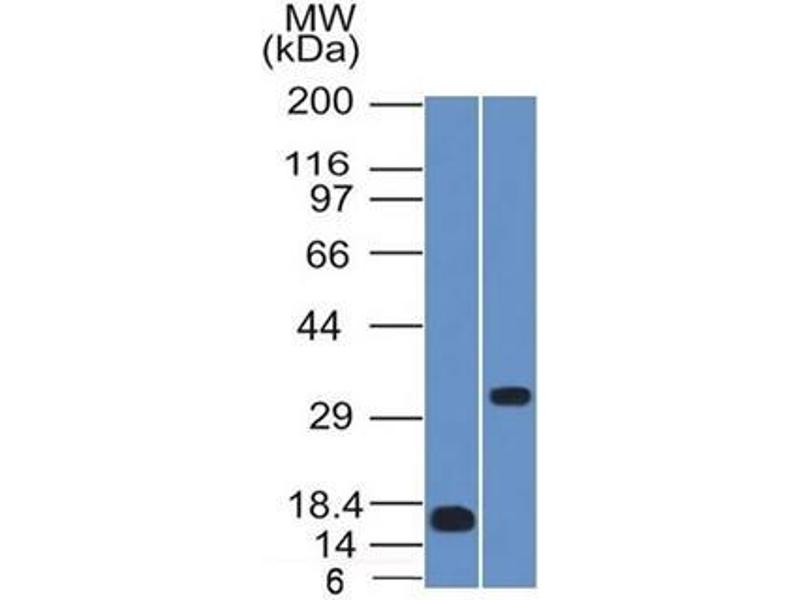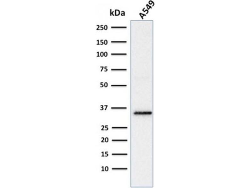 Known Application: ELISA (Use Ab at 2-4 μg/mL for coating) (Order Ab without BSA), ,Western Blot (1-2 μg/mL), ,Immunohistochemistry (Formalin-fixed) (1-2 μg/mL for 30 min at RT),(Staining of formalin-fixed tissues requires boiling tissue sections in 10 mM Citrate Buffer, pH 6.0, for 10-20 min followed by cooling at RT for 20 minutes),Optimal dilution for a specific application should be determined.