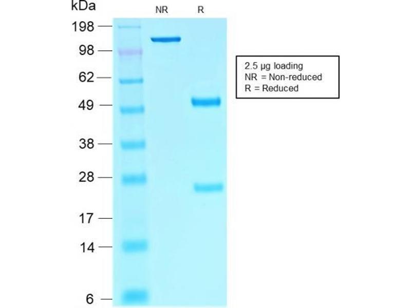 Known Application: Immunohistochemistry (Formalin-fixed) (0.5-1 μg/mL for 30 minutes at RT)(Staining of formalin-fixed tissues requires boiling tissue sections in 10 mM citrate buffer, pH 6.0, for 10-20 min followed by cooling at RT for 20 minutes)Optimal dilution for a specific application should be determined.