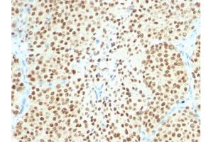 Known Application: Immunohistochemistry (Formalin-fixed) (1-2 μg/mL for 30 minutes at RT)(Staining of formalin-fixed tissues requires boiling tissue sections in 10 mM citrate buffer, pH 6.0, for 10-20 min followed by cooling at RT for 20 minutes)Optimal dilution for a specific application should be determined.