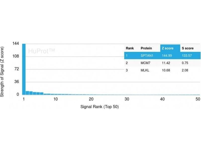- Recombinant fragment of human SPTAN1 protein (around aa 2351-2475) (exact sequence is proprietary)