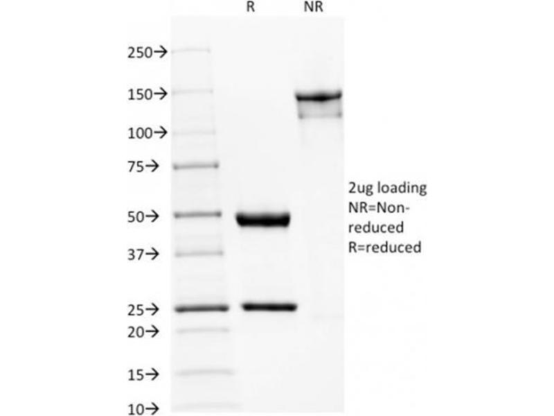 Known Application: ELISA (Use Ab at 2-4 μg/mL for coating) (Order Ab without BSA), Flow Cytometry (1-2 μg/million cells), (Immunofluorescence (0.5-1 μg/mL), Western Blot (0.5-1.0 μg/mL), Immunohistochemistry (Formalin-fixed) (0.5-1.0 μg/mL for 30 minutes at RT) (Staining of formalin-fixed tissues requires boiling tissue sections in 10 mM citrate buffer, pH 6.0, for 10-20 min followed by cooling at RT for 20 minutes)Optimal dilution for a specific application should be determined.