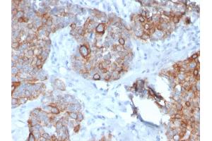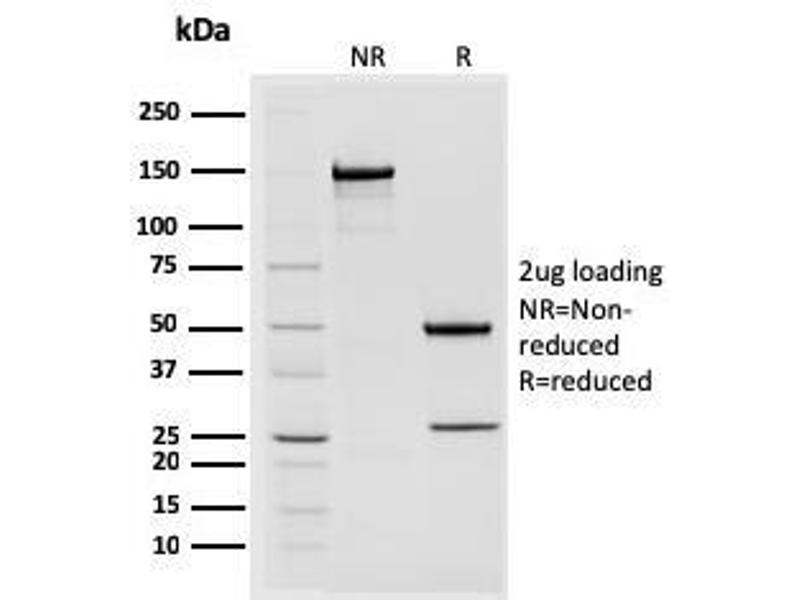 Known Application: Immunohistochemistry (Formalin-fixed) (1-2 μg/mL for 30 min at RT)(Staining of formalin-fixed tissues requires boiling tissue sections in 10 mM Citrate Buffer, pH 6.0, for 10-20 min followed by cooling at RT for 20 minutes)Optimal dilution for a specific application should be determined.