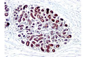 Known Application: Immunohistochemistry (Formalin-fixed) (0.5-1.0 μg/mL for 30 minutes at RT)(Staining of formalin-fixed tissues requires boiling tissue sections in 10 mM Citrate Buffer, pH 6.0, for 10-20 min followed by cooling at RT for 20 minutes)Optimal dilution for a specific application should be determined.