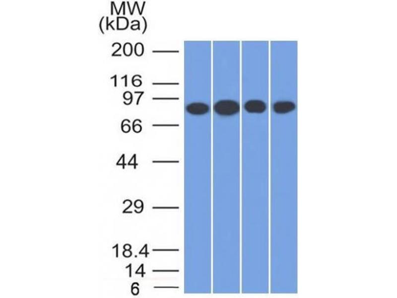 Known Application: ELISA (Use Ab at 2-4 μg/mL for coating) (Order Ab without BSA), Immunohistochemistry (Formalin-fixed) (1-2 μg/mL for 30 minutes at RT)(Staining of formalin-fixed tissues requires boiling tissue sections in 10 mM Tris with 1 mM EDTA, pH 9.0, for 10-20 min followed by cooling at RT for 20 minutes) Western Blot (0.5-1.0 μg/mL)Optimal dilution for a specific application should be determined.