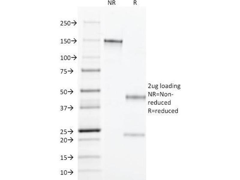 Known Application: ELISA (Use Ab at 2-4 μg/mL for coating) (Order Ab without BSA), Immunofluorescence (1-2 μg/mL), Immunohistochemistry (Formalin-fixed) (2-4 μg/mL for 30 min at RT)(Staining of formalin-fixed tissues requires boiling tissue sections in 10 mM Citrate Buffer, pH 6.0, for 10-20 min followed by cooling at RT for 20 minutes)Optimal dilution for a specific application should be determined.