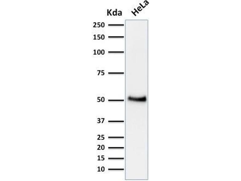 Known Application: Western Blot (0.5-1 μg/mL), Immunohistochemistry (Formalin-fixed) (0.5-1 μg/mL for 30 minutes at RT) (Staining of formalin-fixed tissues requires boiling tissue sections in 10 mM citrate buffer, pH 6.0, for 10-20 min followed by cooling at RT for 20 minutes)Optimal dilution for a specific application should be determined.