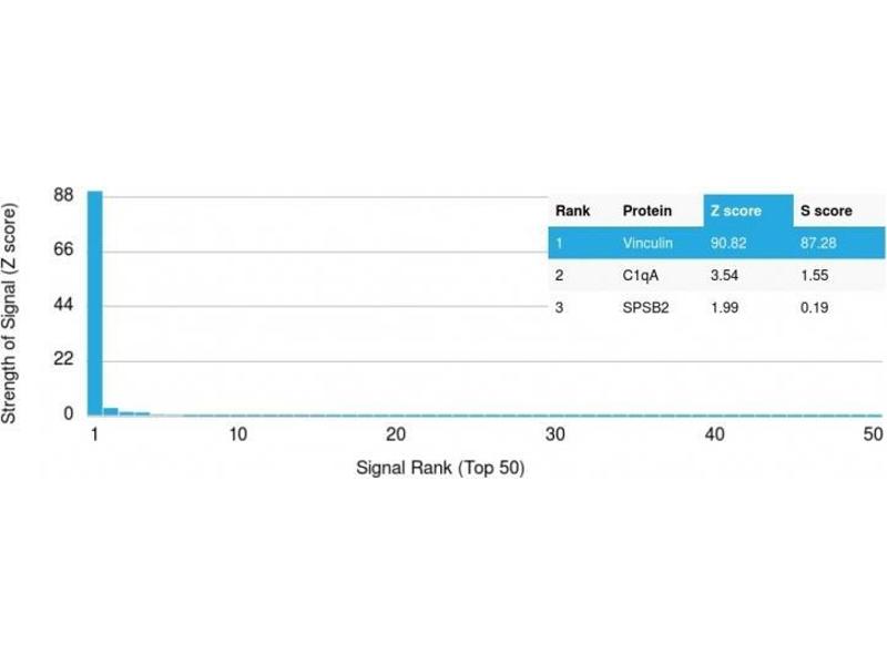 - Recombinant fragment (around aa 174-322) of human Vinculin (VCL) protein (exact sequence is proprietary)