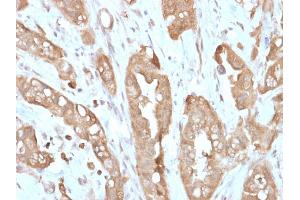 Known Application: Immunohistochemistry (Formalin-fixed) (0.5-1.0 μg/mL for 30 minutes at RT)(Staining of formalin-fixed tissues requires boiling tissue sections in 10 mM citrate buffer, pH 6.0, for 10-20 min followed by cooling at RT for 20 minutes)Optimal dilution for a specific application should be determined.