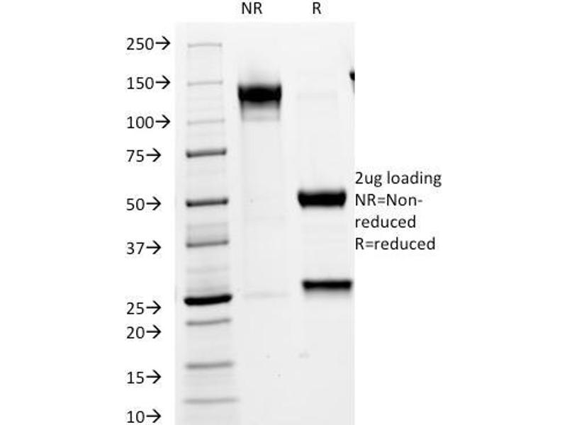 Known Application: Immunohistochemistry (Formalin-fixed) (1-2 μg/mL for 30 minutes at RT)(Staining of formalin-fixed tissues is enhanced by boiling tissue sections in 10 mM Tris with 1 mM EDTA, pH 9.0 for 10-20 min followed by cooling at RT for 20 minutes)Optimal dilution for a specific application should be determined.