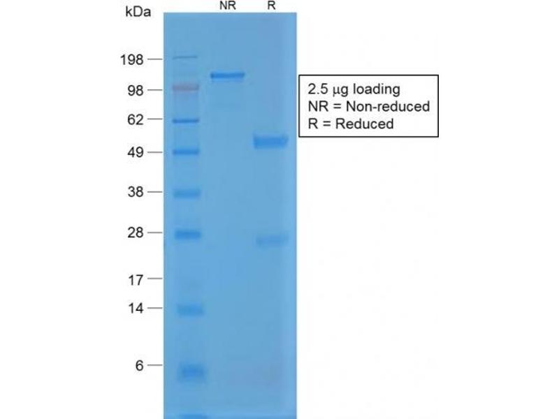 Known Application: Western Blot (0.5-1.0 μg/mL), Immunohistochemistry (Formalin-fixed) (1-2 μg/mL for 30 minutes at RT) (Staining of formalin-fixed tissues requires boiling tissue sections in 10 mM Citrate Buffer, pH 6.0, for 10-20 min followed by cooling at RT for 20 minutes)Optimal dilution for a specific application should be determined.
