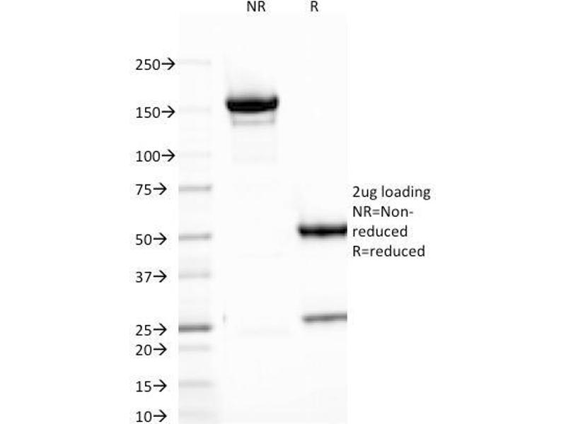 Known Application: ELISA (Use Ab at 2-4 μg/mL for coating) (Order Ab without BSA), Flow Cytometry (1-2 μg/million cells in 0.1ml), ,Immunofluorescence (1-2 μg/mL), Western Blot (1-2 μg/mL),Immunohistochemistry (Formalin-fixed) (1-2 μg/mL for 30 minutes at RT),(Staining of formalin-fixed tissues requires boiling tissue sections in 10 mM Tris with 1 mM EDTA, pH 9.0, for 10-20 min followed by cooling at RT for 20 minutes),Optimal dilution for a specific application should be determined.