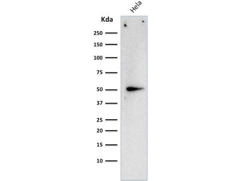Known Application: Flow Cytometry (0.5-1 μg/million cells), Immunofluorescence (1-2 μg/mL), Immunohistochemistry (Formalin-fixed) (1-2 μg/mL for 30 min at RT)(Staining of formalin-fixed tissues requires boiling tissue sections in 10 mM Citrate Buffer, pH 6.0, for 10-20 min followed by cooling at RT for 20 minutes)Optimal dilution for a specific application should be determined.