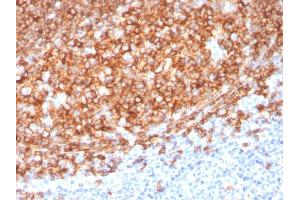- Recognizes a protein of 30-33 kDa, which is identified as CD20. It is a non-Ig differentiation antigen of B-cells and its expression is restricted to normal and neoplastic B-cells, being absent from all other leukocytes and tissues. CD20 is expressed by pre-B-cells and persists during all stages of B-cell maturation but is lost upon terminal differentiation into plasma cells. This MAb can be used for immunophenotyping of leukemia and malignant cells, B lymphocyte detection in peripheral blood and B cell localization in tissues. It reacts with the majority of B-cells present in peripheral blood and lymphoid tissues and their derived lymphomas. In lymphoid tissue, germinal center blasts and B-immunoblasts are particularly reactive. It is a reliable antibody for ascribing a B-cell phenotype in known lymphoid tissues. Rarely, CD20-positive T-cell lymphomas have been reported. Reactivity has also been noted with Reed-Sternberg cells in cases of Hodgkin s disease, particularly of lymphocyte predominant type.