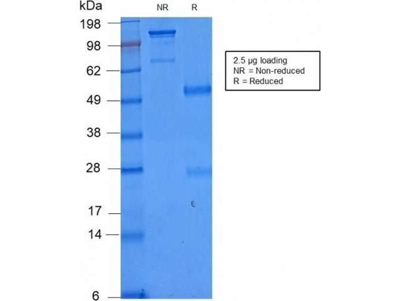 Known Application: ELISA (Use Ab at 2-4 μg/mL for coating) (Order Ab without BSA), Flow Cytometry (1-2 μg/million cells), Immunofluorescence (1-2 μg/mL), Western Blot (1-2 μg/mL), ,Immunohistochemistry (Formalin-fixed) (1-2 μg/mL for 30 minutes at RT),(Staining of formalin-fixed tissues requires boiling tissue sections in 10 mM Tris buffer with 1 mM EDTA, pH 9.0, for 10-20 min followed by cooling at RT for 20 minutes),Optimal dilution for a specific application should be determined.