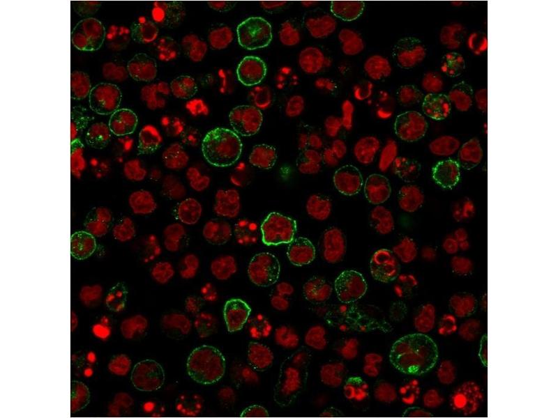 - Recognizes a protein of 70 kDa, which is identified as CD86. CD86 is a type I transmembrane glycoprotein and a member of the immunoglobulin superfamily of cell surface receptors. It is expressed at high levels on resting peripheral monocytes and dendritic cells and at very low density on resting B and T lymphocytes. CD86 expression is rapidly upregulated by B cell specific stimuli with peak expression at 18 to 42 hours after stimulation. CD86, along with CD80/B71, is an important accessory molecule in T cell co-stimulation via its interaction with CD28 and CD152/CTLA4. Since CD86 has rapid kinetics of induction, it is believed to be the major CD28 ligand expressed early in the immune response. It is also found on malignant Hodgkin and Reed Sternberg (HRS) cells in Hodgkin's disease.