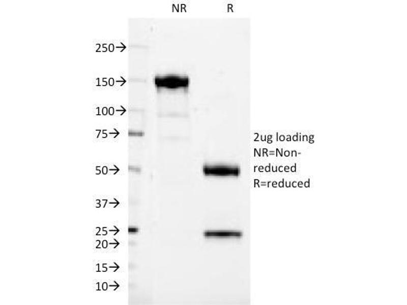 - Recognizes a protein of 33-55 kDa, identified as CD37 (Workshop V, Code CD37.7). CD37 is strongly expressed on normal and neoplastic mature (sIg+) B-lymphocytes. In B-cell ontogeny, CD37 appears after the pre-B-cell stage, is maintained during peripheral B-cell development and is lost upon terminal differentiation into plasma cells.1 CD37 is also present, at low densities, on resting and activated T cells, neutrophils, monocytes, and some myelomonocytic leukemia cells. It is absent from platelets, erythrocytes. CD37 is a member of a family of tetraspan transmembrane proteins, including CD9, CD53, CD63, CD81, and CD82. It associates other tetraspan transmembrane proteins and MHC class II molecules to form a large complex at the surface of B cells and play a role in signal transduction. CD37 is a valuable and stable marker for peripheral mature B-cells and corresponding malignancies like B-cell chronic lymphocytic leukemia (B-CLL), hairy cell leukemia (HCL), and all types of B-cell non-Hodgkin'' lymphoma (B-NHL).