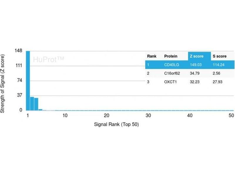 - Recombinant fragment of human CD40LG protein (around aa 108-261) (exact sequence is proprietary)