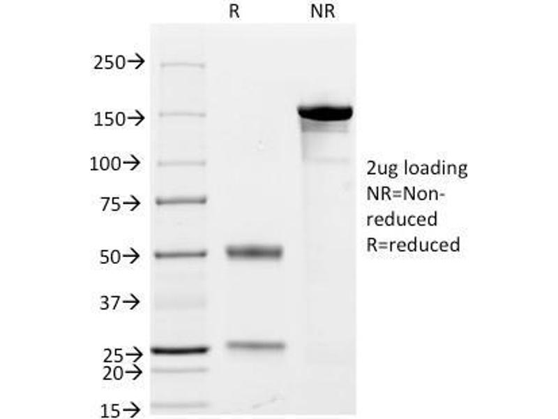 Known Application: Western Blot (1-2 μg/mL), Flow Cytometry (1-2 μg/million cells), Immunofluorescence (1-2 μg/mL), Immunohistochemistry (Formalin-fixed) (0.5-1.0 μg/mL for 30 minutes at RT)(Staining of formalin-fixed tissues requires boiling tissue sections in 10 mM citrate buffer, pH 6.0, for 10-20 min followed by cooling at RT for 20 minutes)Optimal dilution for a specific application should be determined.