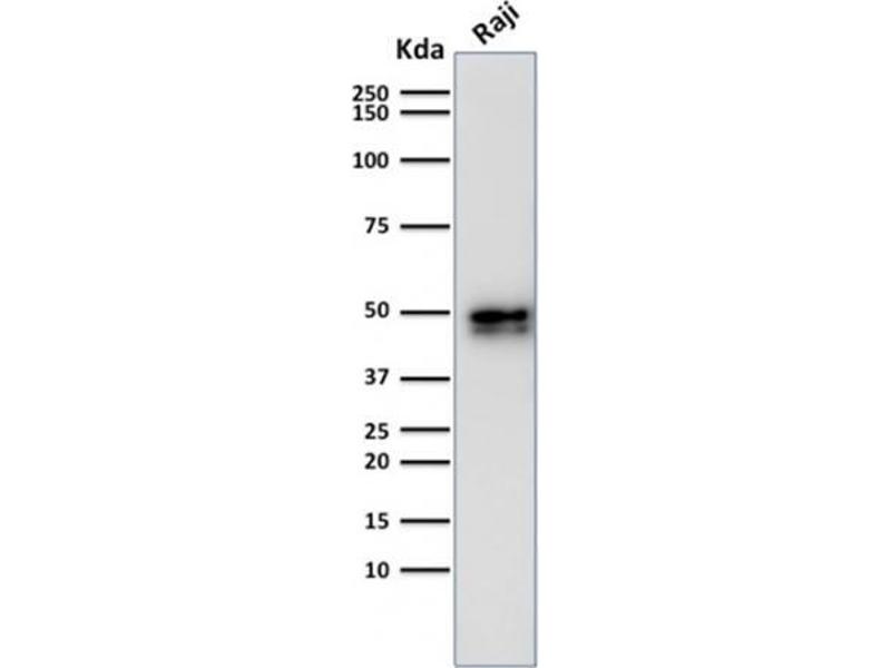 Positive Control: RaJi or Daudi or Ramos cells. Germinal center B- cells in a lymph node or tonsil.