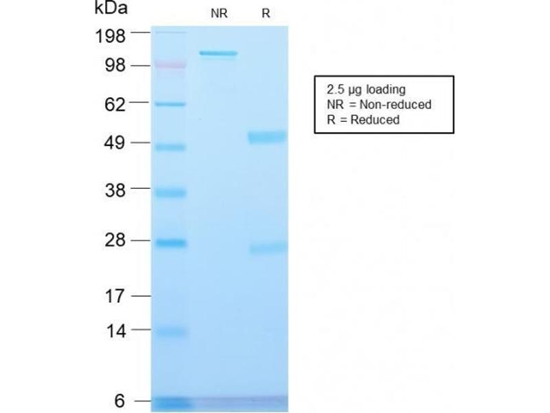 Known Application: Immunohistochemistry (Formalin-fixed) (1-2 μg/mL for 30 minutes at RT)(Staining of formalin-fixed tissues requires boiling tissue sections in 10 mM Citrate buffer, pH 6.0, for 10-20 min followed by cooling at RT for 20 minutes)Optimal dilution for a specific application should be determined.
