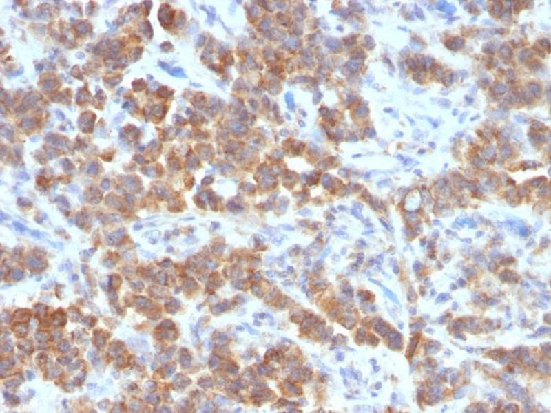 Known Application: Immunohistochemistry (Formalin-fixed) (1-2 μg/mL for 30 minutes at RT)(Staining of formalin-fixed tissues requires boiling tissue sections in 10 mM Tris with 1 mM EDTA, pH 9.0, for 10-20 min followed by cooling at RT for 20 minutes) Optimal dilution for a specific application should be determined.